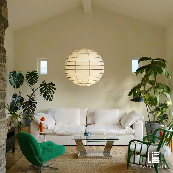 Ambient Lighting: The white paper shade provides a soft, diffused light, creating a cozy and inviting atmosphere.