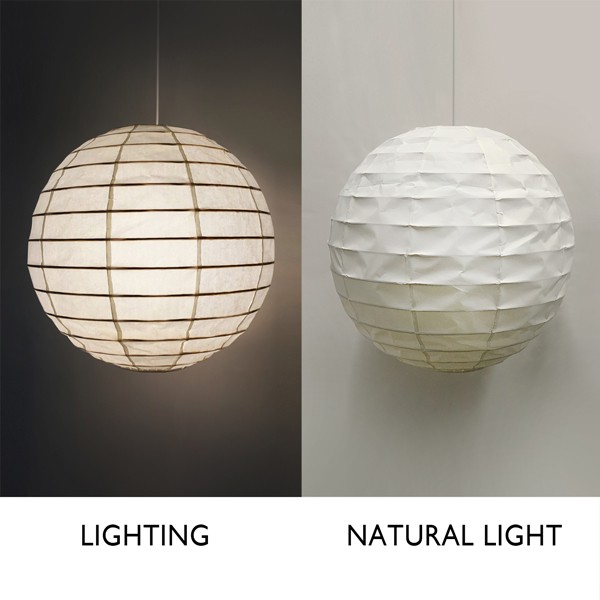 This hanging lampshade features a pure handmade bamboo frame and Chinese art paper, adding an authentic touch to any room.Crafted from bamboo and Chinese art paper, lampshade offers a warm, natural aesthetic.The white paper shade provides a soft, diffused light, creating a cozy and inviting atmosphere.