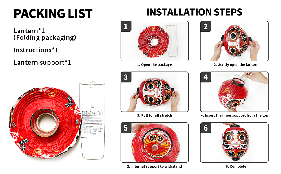 PRODUCT FEATURES: Each paper lamp is made entirely by hand, with color-printed patterns on the lampshade affixed with eco-friendly glue. The lamp's interior is wrapped with steel wire, with approximately 1cm of space between each wire. The lamp can be easily folded, and installation is a breeze.